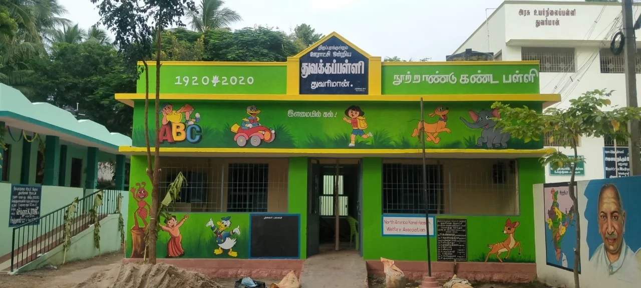 Thuvariman Government Elementary School near Madurai, Tamil Nadu, India has been serving students of the village and nearby villages for over 100 years. The school had infrastructure issues that were brought to our attention and we were able to promptly revamp the building, procure school furniture and other accessories. The initiative was funded by our volunteers and coordinated by volunteers in India with the help of the school Headmistress, Panchayat Leader and other teachers.